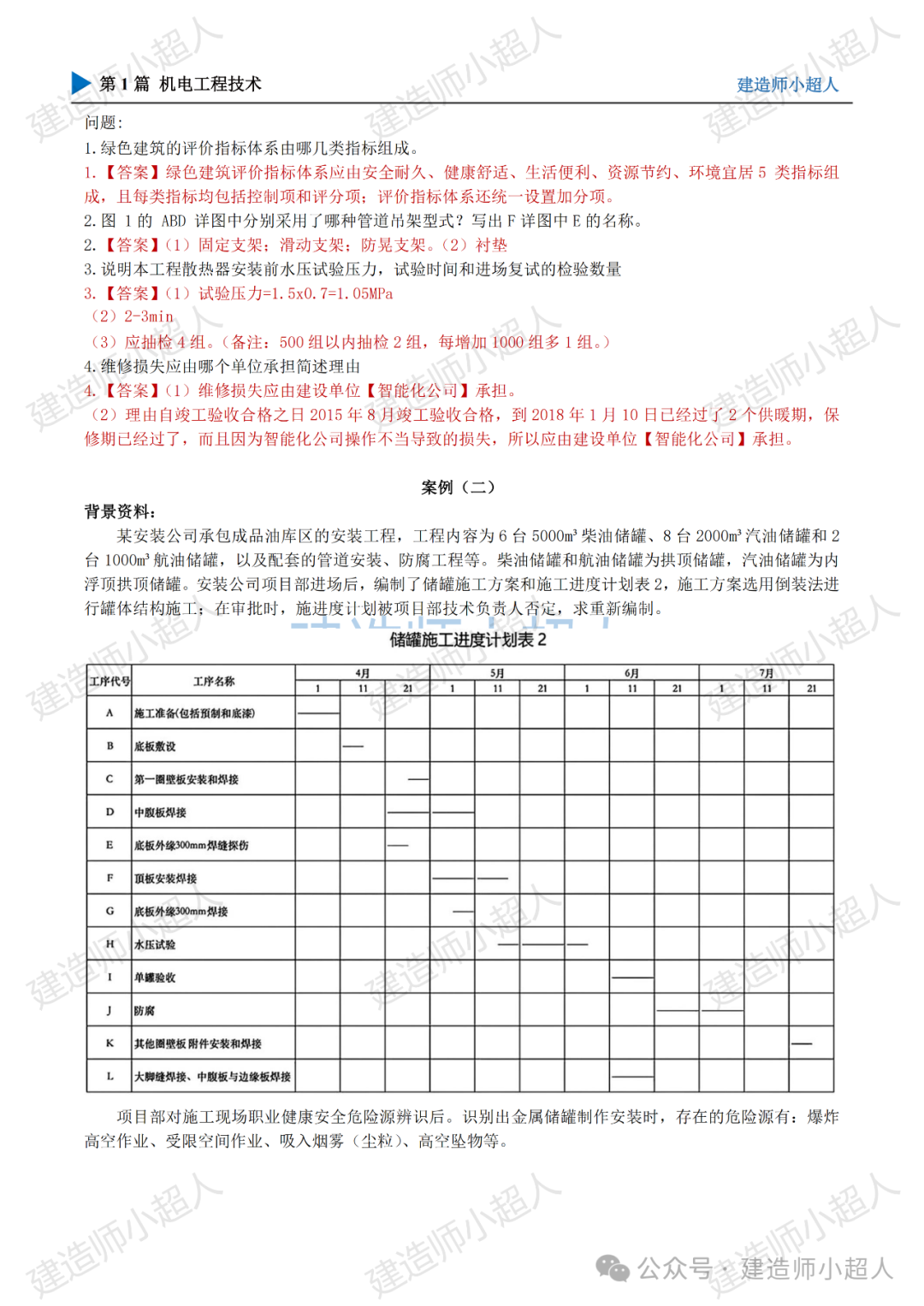 4、金属储罐的横道图为考生回忆版,与真题考卷可能存在差异,且一二建关于此考点存在矛盾,大家不要过分纠结
