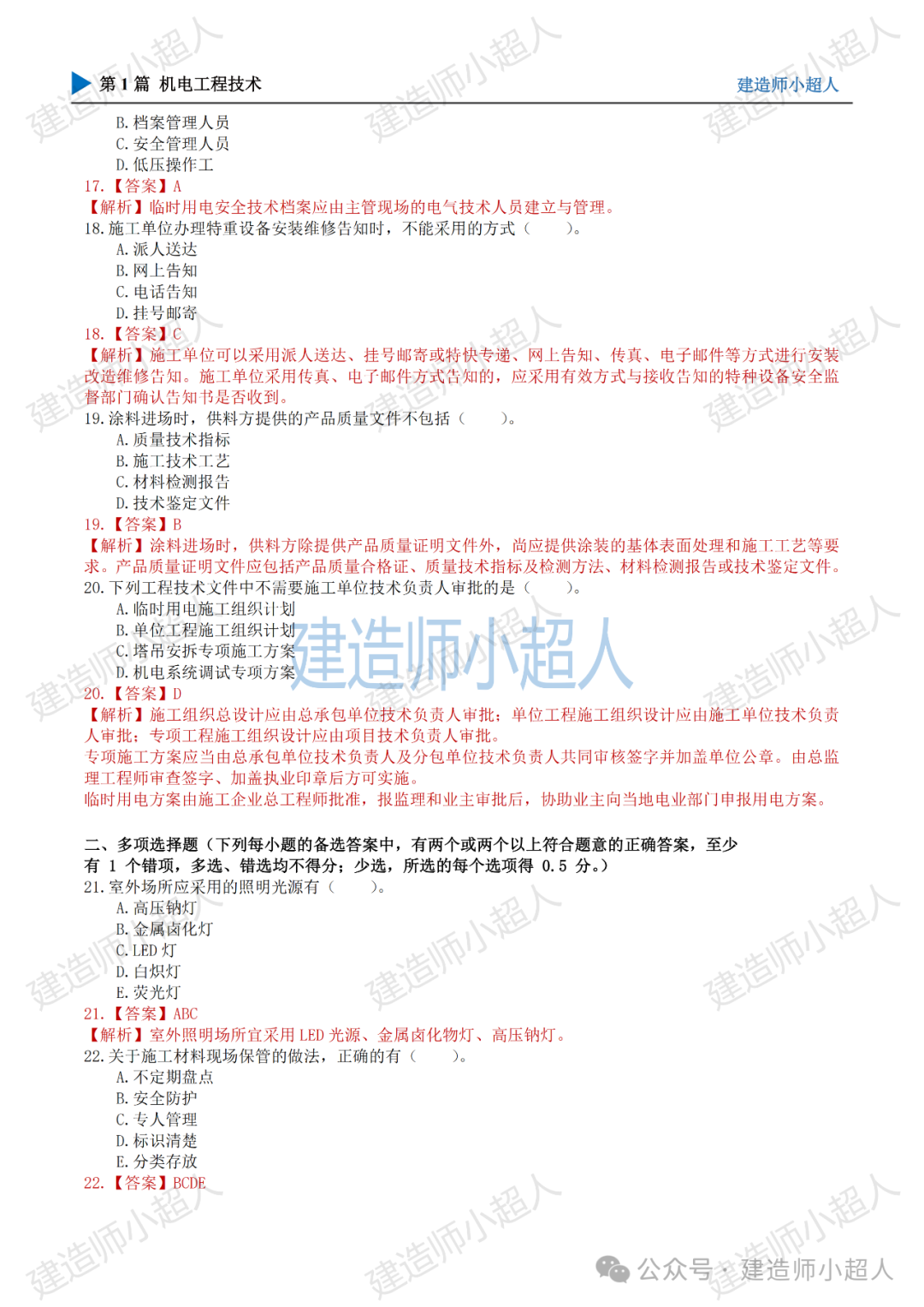 25二建(机电)真题!